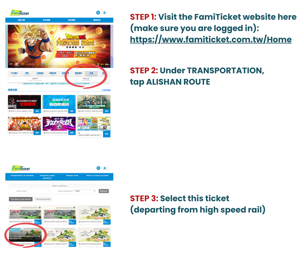- Taiwan HSR Ticket โ to get from your origin city to Chiayi HSR Station. One-way fare is NT$283 per adult. Book tickets in advance on Klook using promo code HEYIANCKLOOK for up to 5% off. Reserve your train slot at least a day before your visit via the THSR website at pass.thsrc.com.tw.