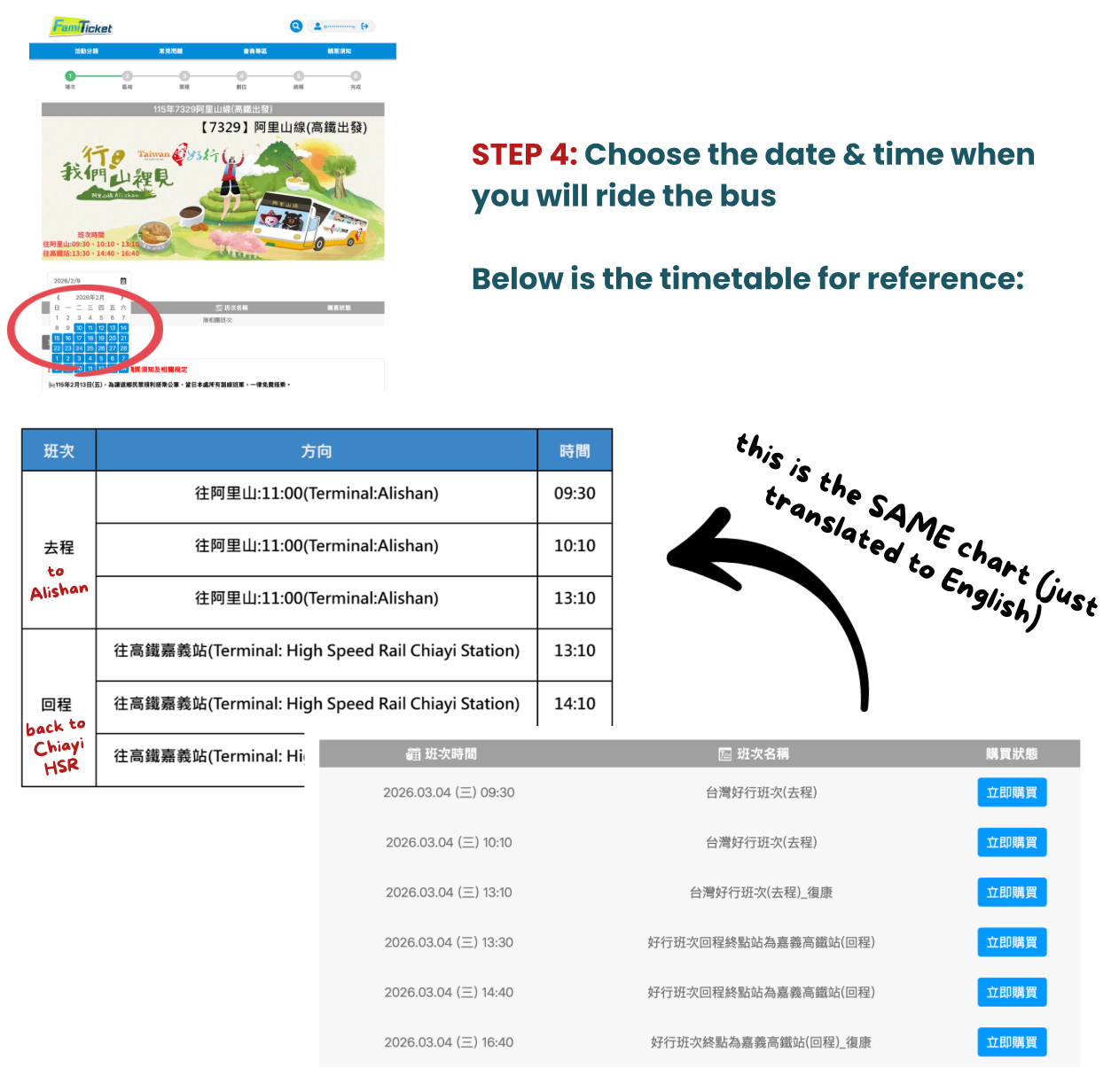 โ Step 3: Ride Bus 7329 to Alishan Recreational Area